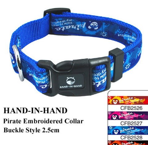 Collier nylon décor  long 38cm à 54cm largeur 2,5cm 4 couleurs rouge/bleu/noir/violet